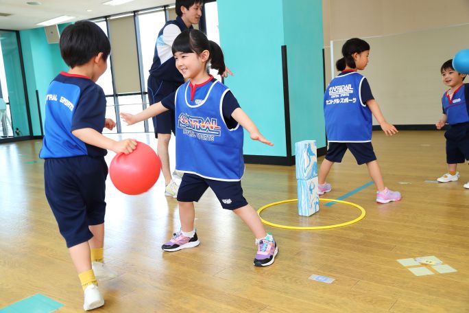 この時期は、走る、跳ぶ、投げるといった基本的な動きの習得が目標です。