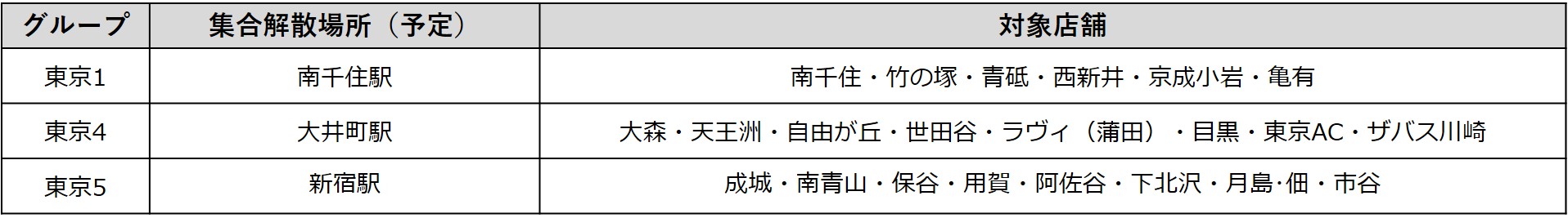 集合解散場所 | 各地域ターミナル駅(一覧表参照) |