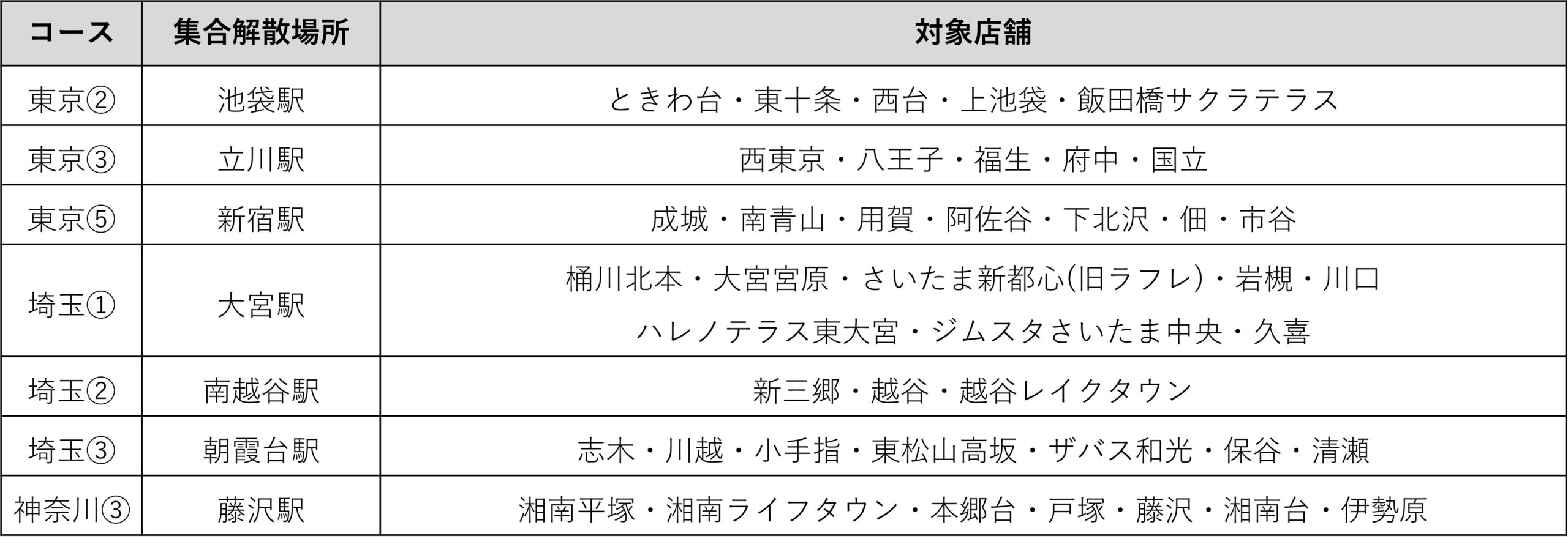 桶川北本・大宮宮原・さいたま新都心(旧ラフレ)・岩槻・川口・ハレノテラス東大宮・ジムスタさいたま中央・久喜