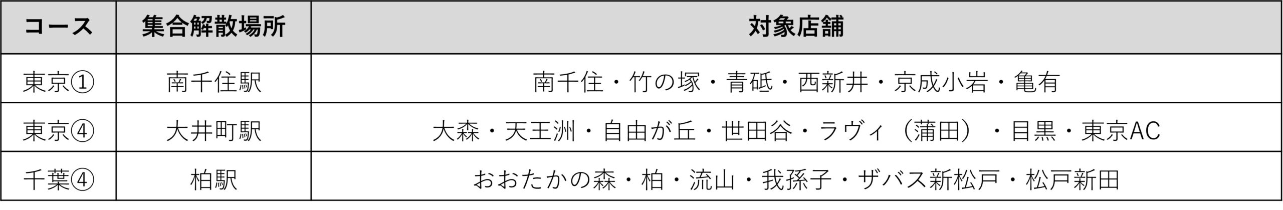 | 集合解散場所 | 以下表参照 |