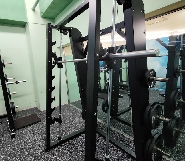バーが斜めのスーパースミス!ウエイトは140kgまで常設!隣のパワーラックと合わせると、高重量トレーニングも可能! -