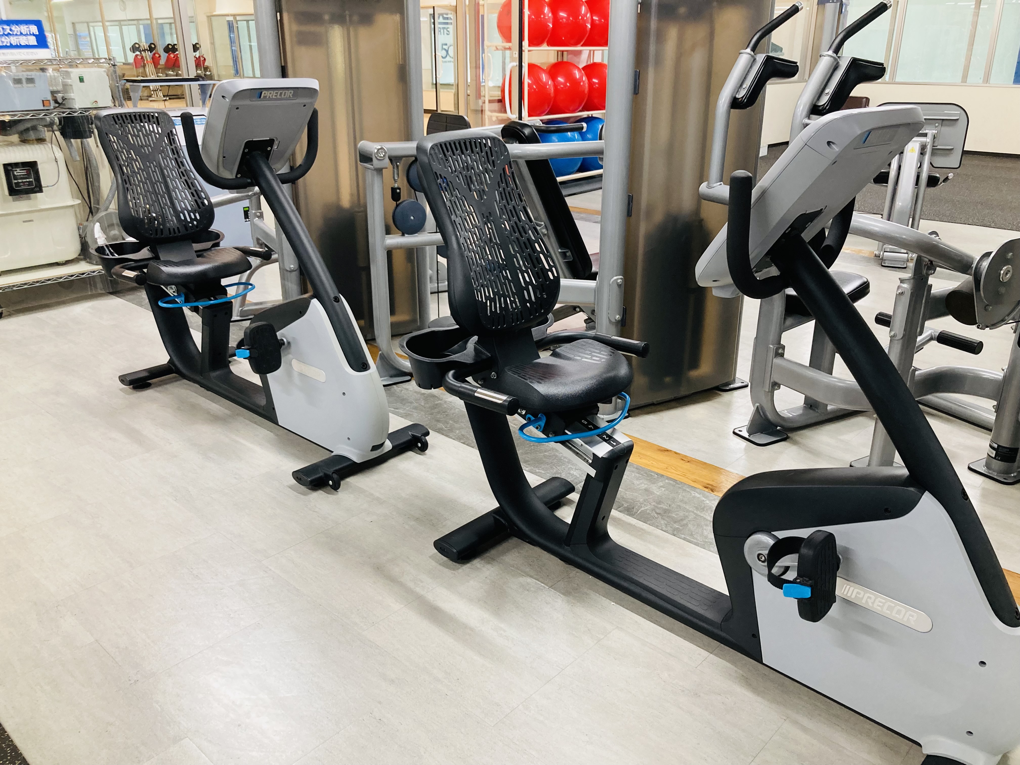 <カーディオエリア>リカンベントバイク2台(背もたれつきのフィットネスバイク)