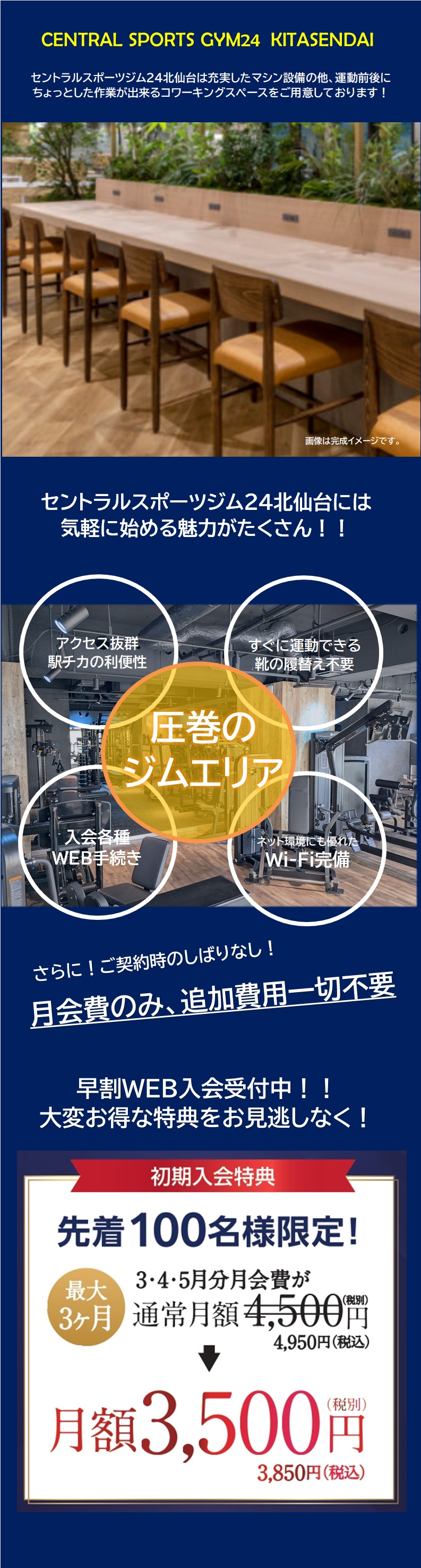 圧巻のジム施設の他、コワーキングスペースも搭載!!