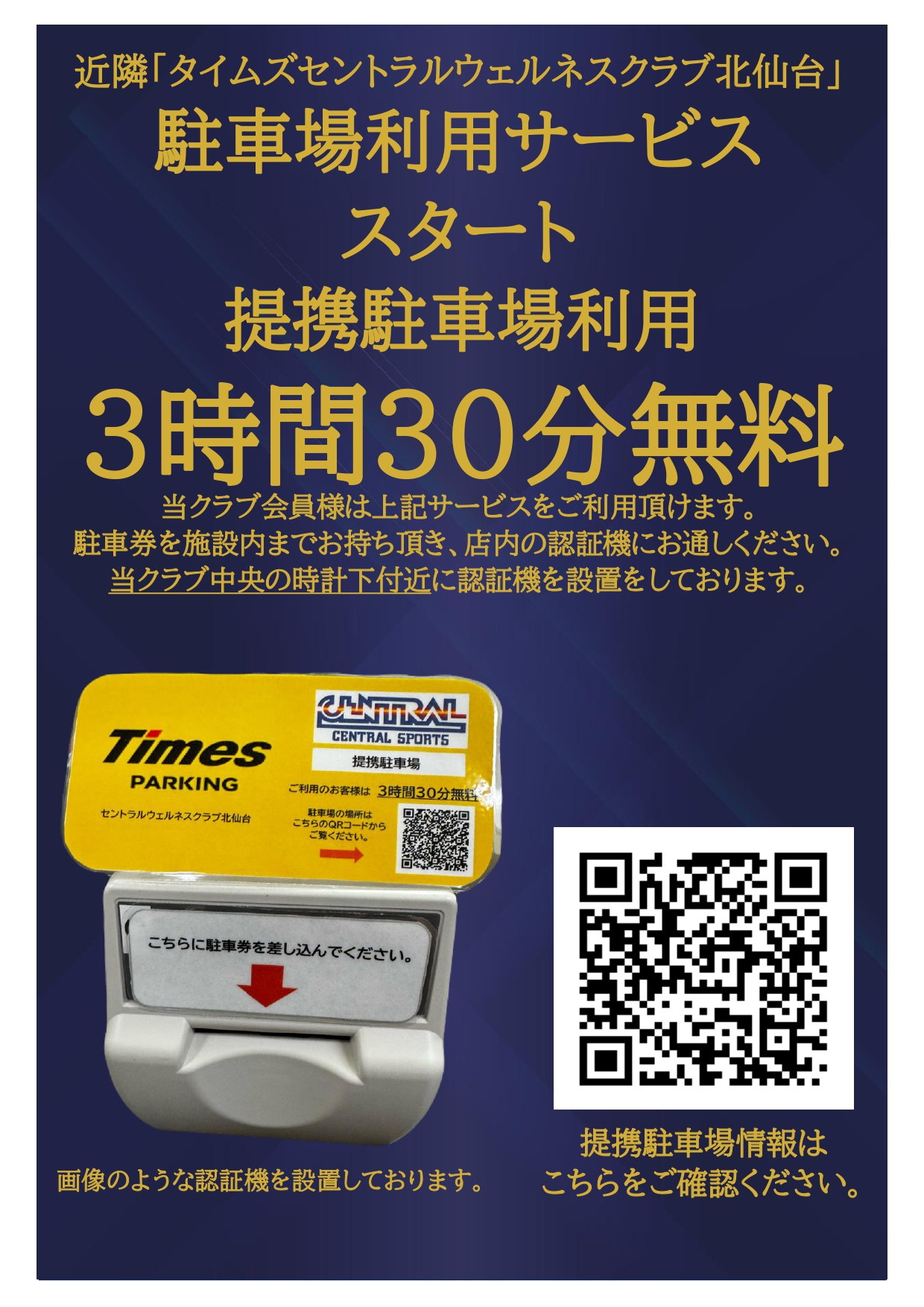 セントラルスポーツジム24北仙台近隣の提携駐車場をご利用頂けるようになりました! お車でお越し頂いても圧巻のGYMを没頭して頂けます!