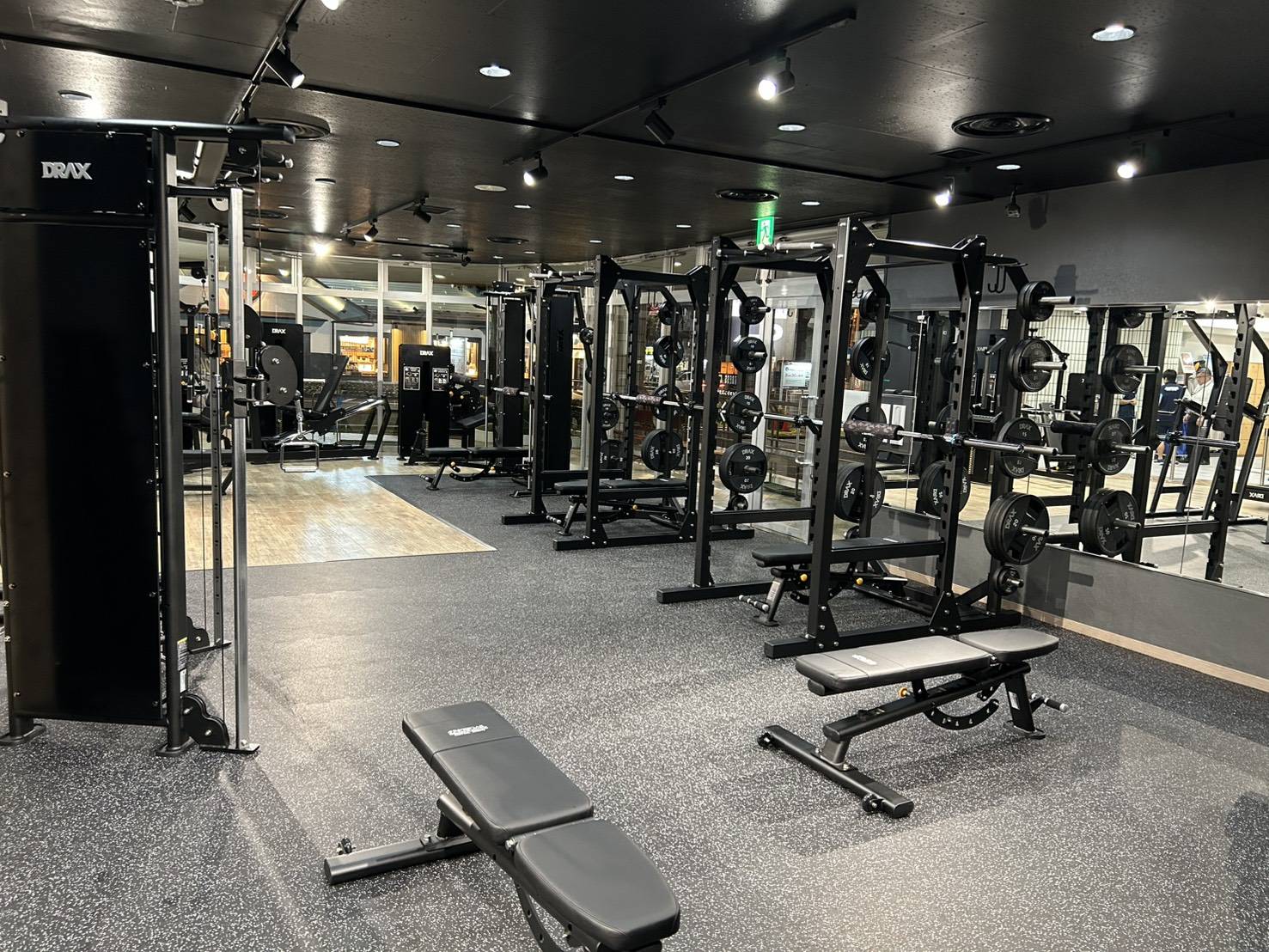 フリーウェイトエリア ダンベル(~40KG)、パワーラック、ベンチプレス、ケーブルマシン、スミスマシンを設置しています。