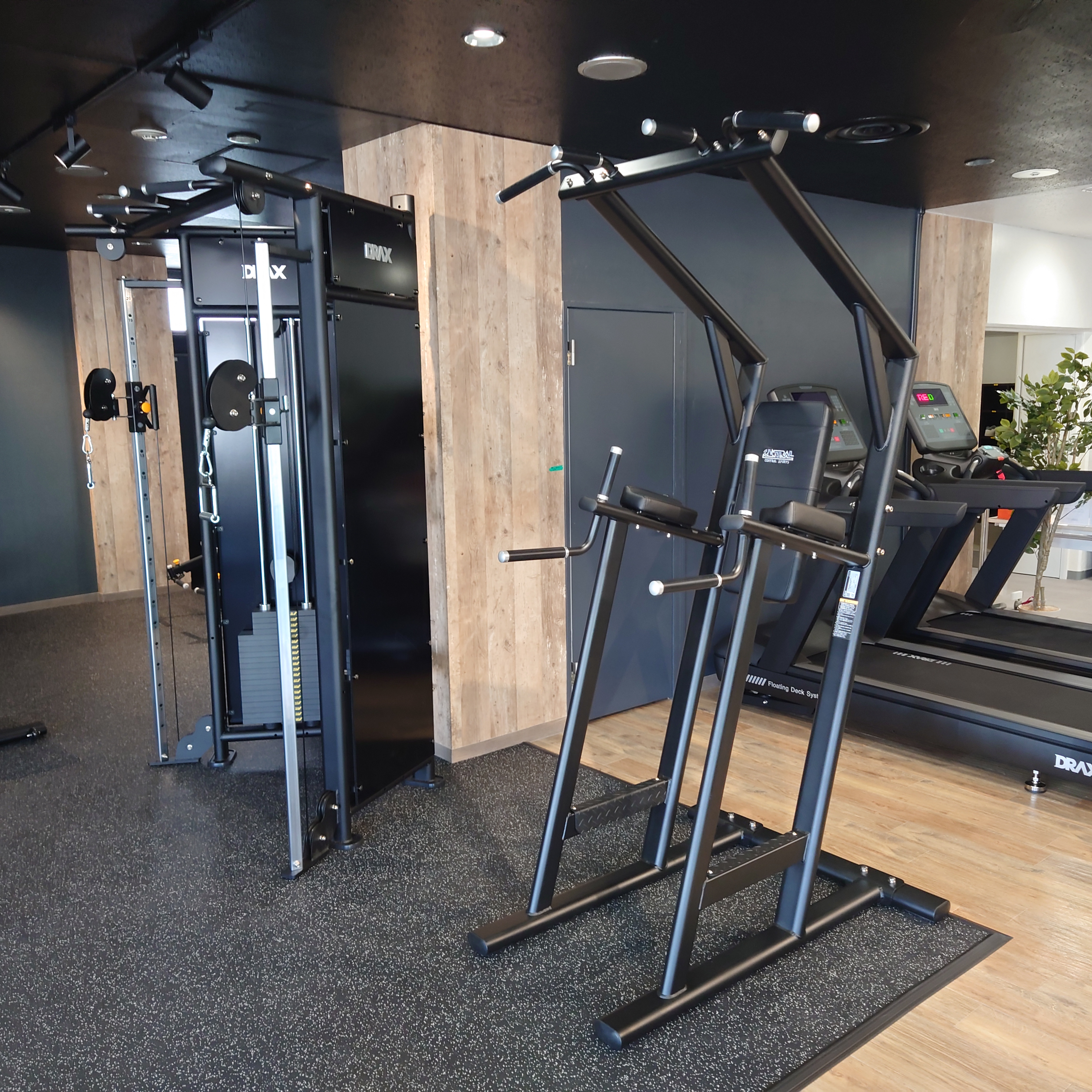 ★NEW★ 24時間ジムエリア② チン&ディップス1台、フルボディトレーナー1台、ダンベル(1kg~40kg)を設置しています。
