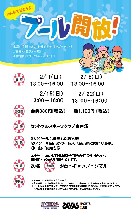 2月プール開放のご案内