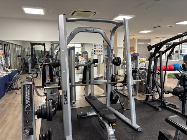 幅広いトレーニングが出来ます。バーベルの軌道が固定されている為、安全性が高く、フリーウェイトが初めての方でも安心してご利用いただけます。 -