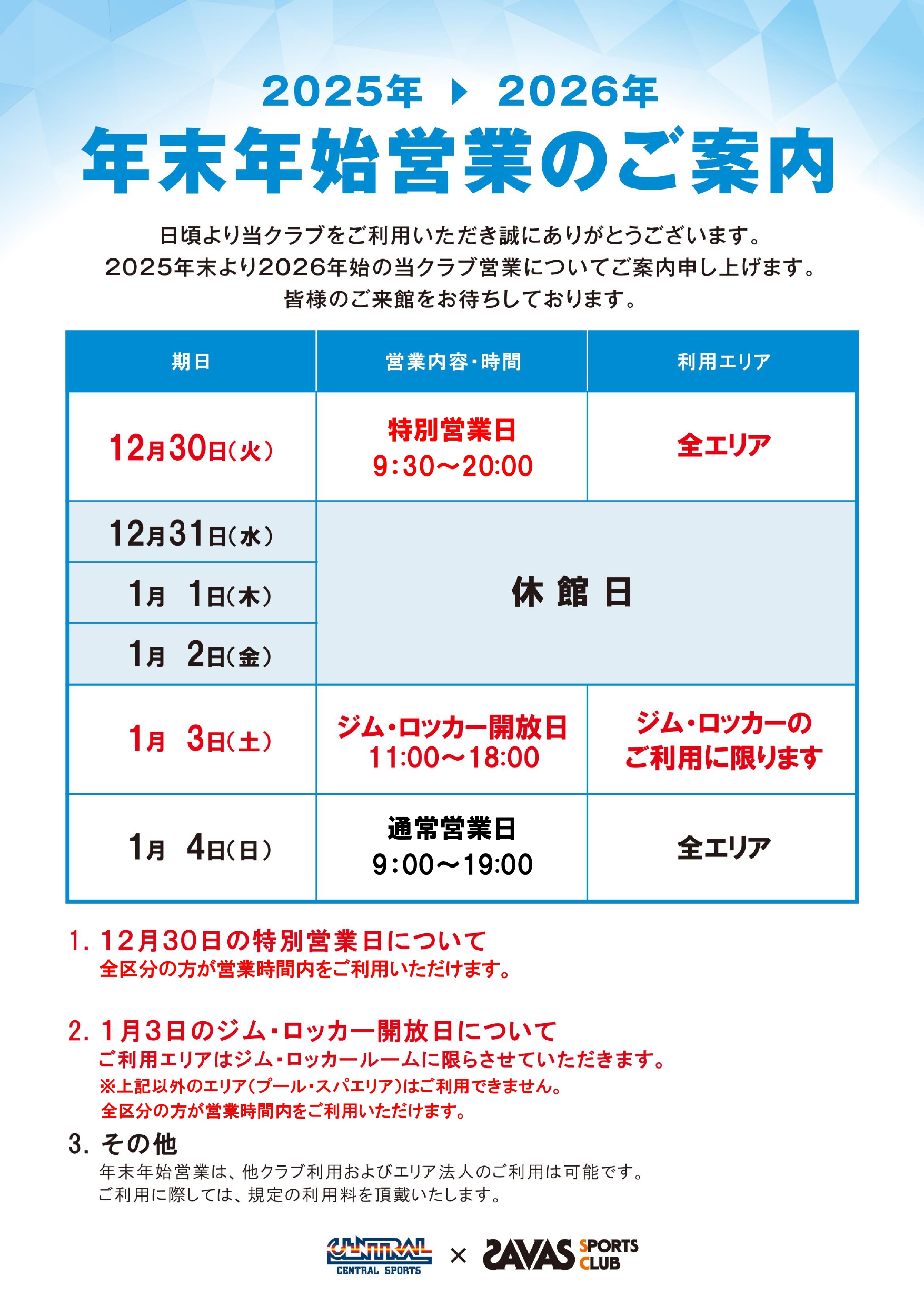 年末年始営業のお知らせ