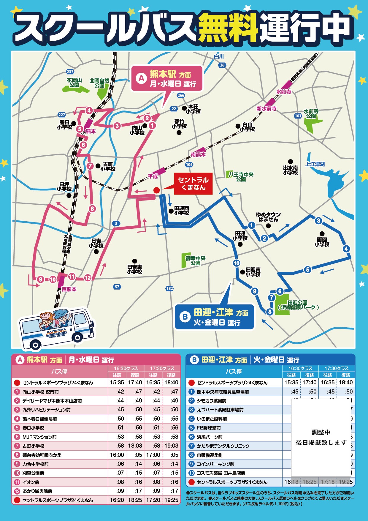 ※スクールバスご乗車の方は、スクールバス反射ラベルをクラブにてご購入いただきスクールバッグに装着していただきます。(バス反射ラベル代:1,100円(税込))