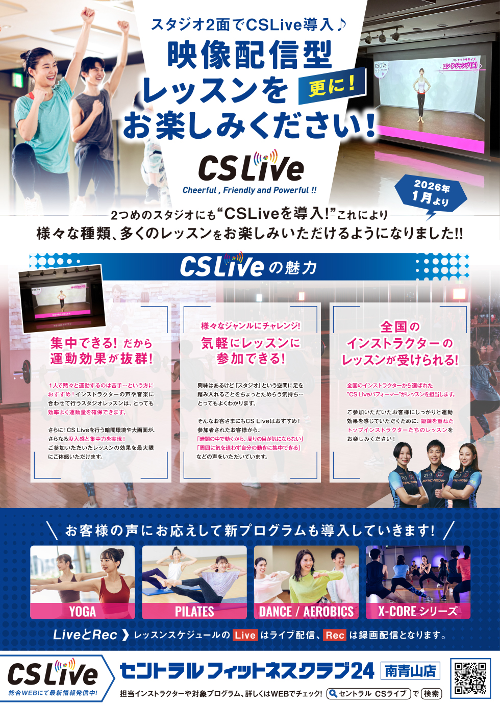 スタジオ2面でCSライブお楽しみいただけます!映像レッスンをご堪能ください♪