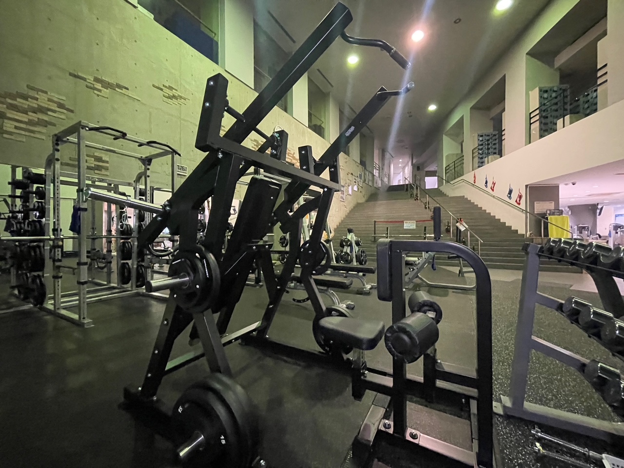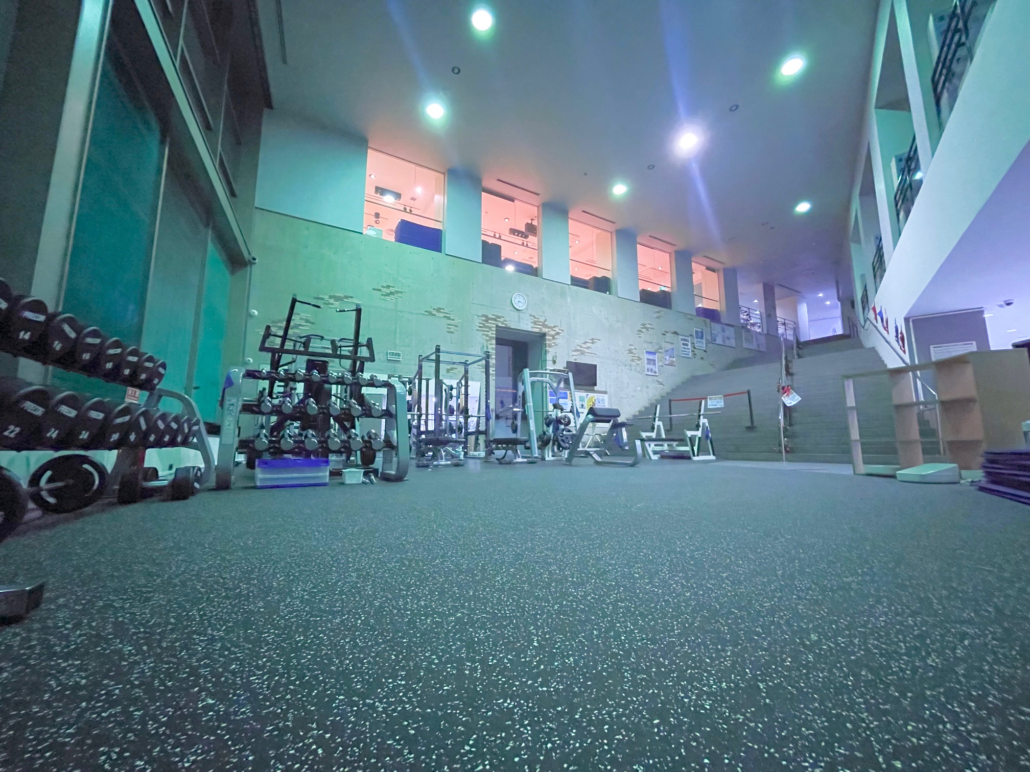 【フリーウェイトエリア(1F)】2025年12月リニューアル!新マシン導入!天井が高く広々としたフリーウェイトエリアです。