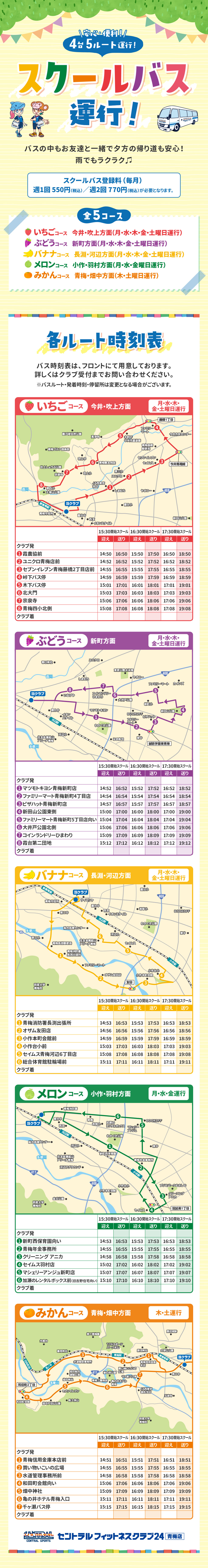 ※バスが停留時刻に到着した時点において、待機していない場合は欠席とみなし、発車いたします。 -