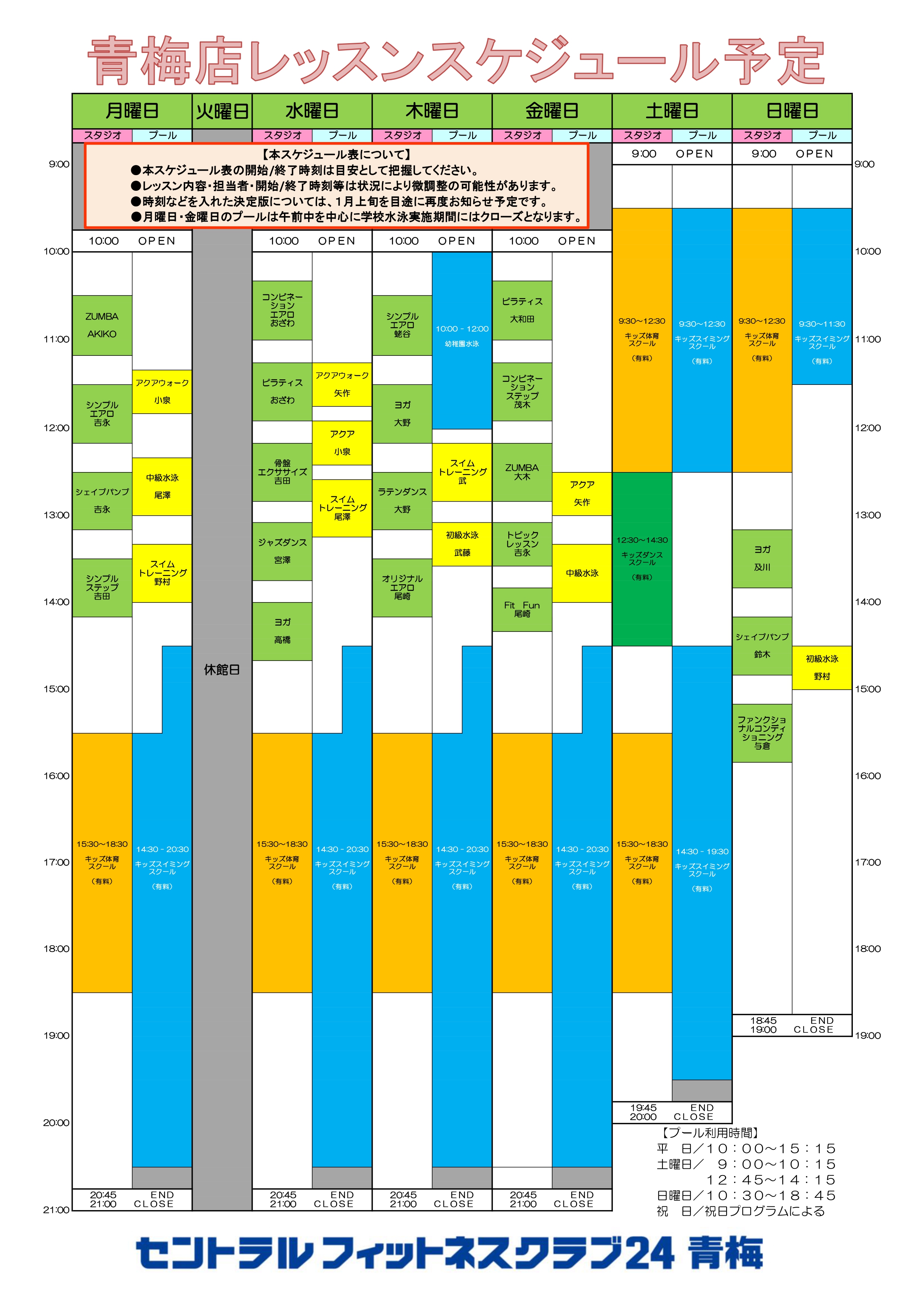 フィットネスのレッスンスケジュールは11/28時点での内容です。
