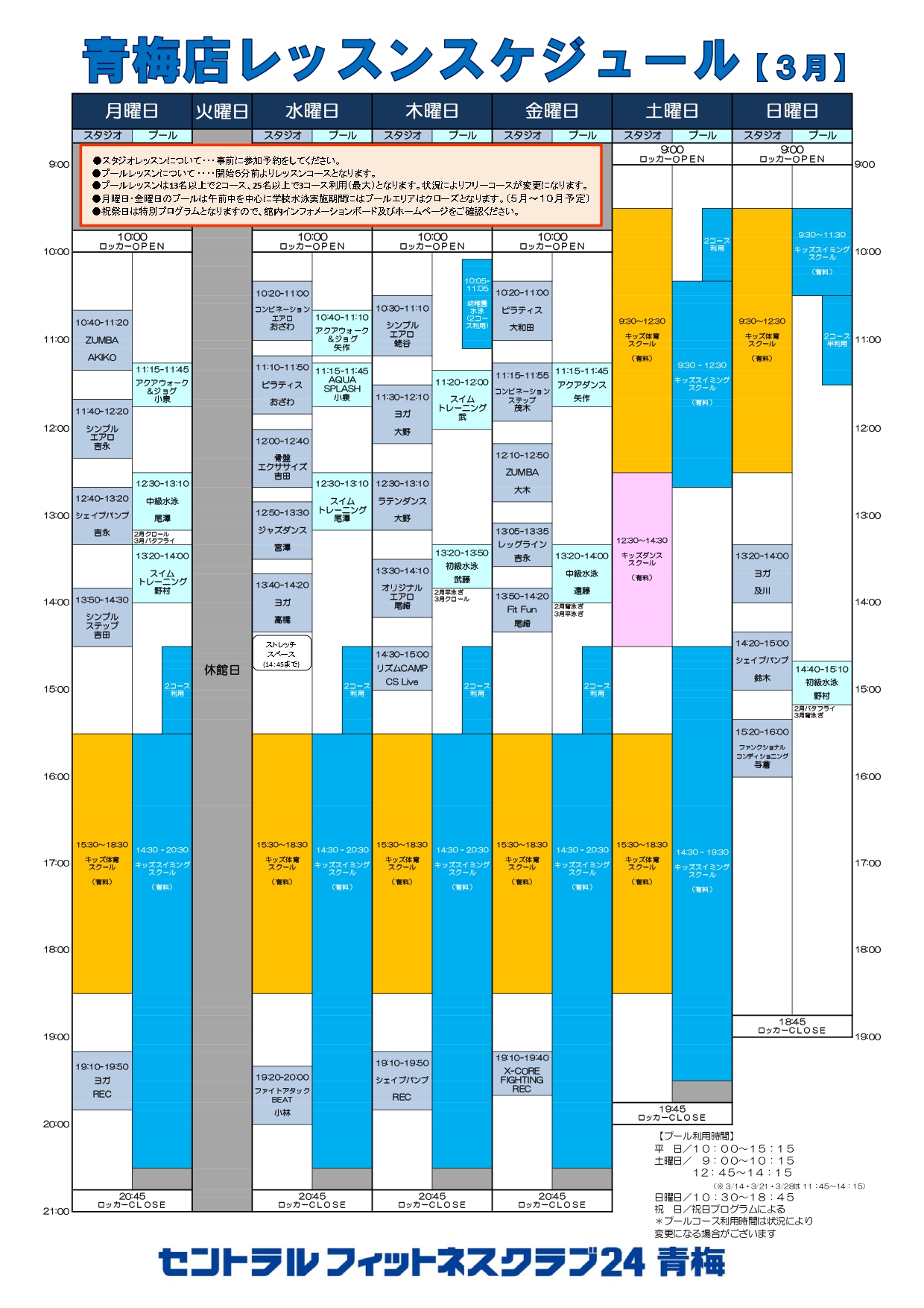 スポーツエリア(レッスン・プール含む)のスケジュール予定はこちら!