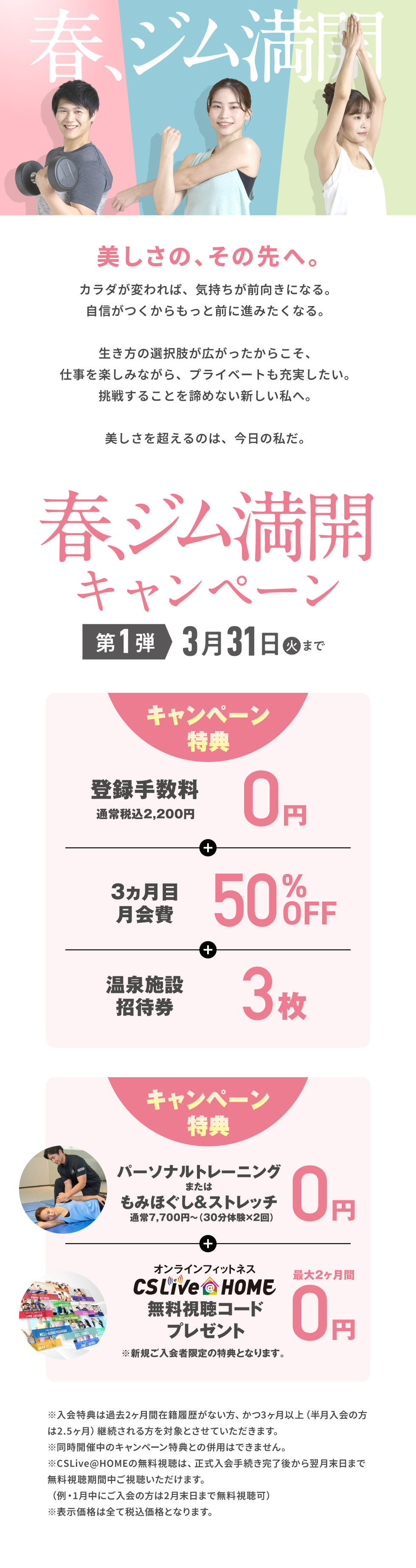 春、ジム満開!春の入会キャンペーン第1弾は3/31〆切です!