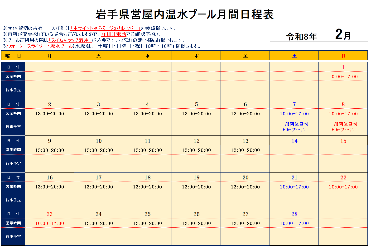 【2月】営業日程表