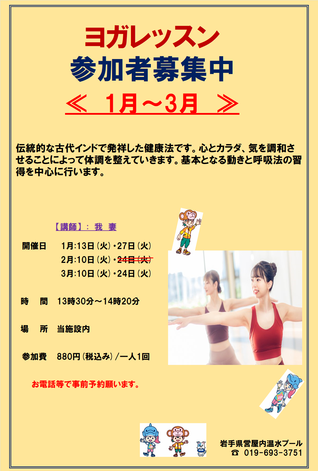 1月~3月【ヨガレッスン】開催・受講者募集中!