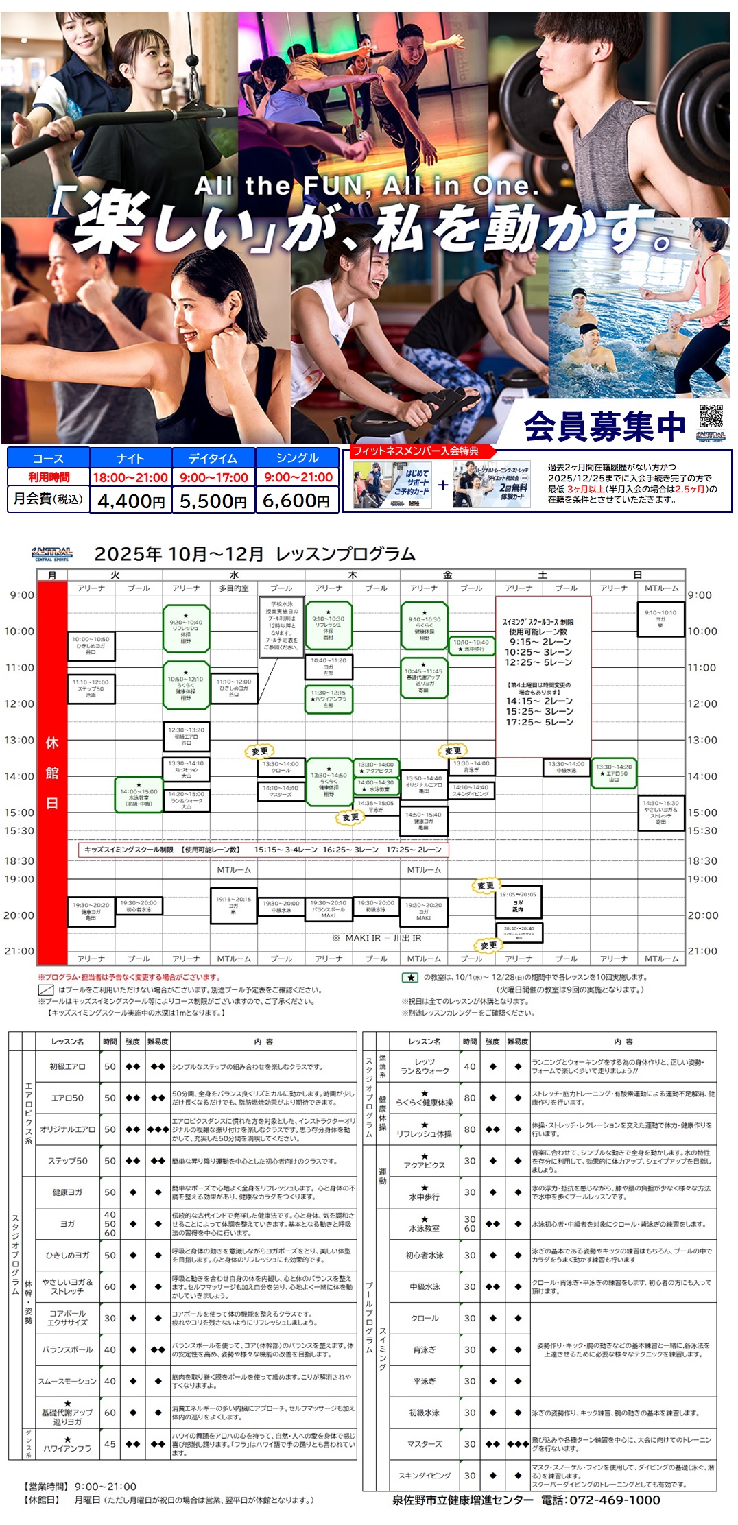 プール・トレーニングジム利用と各種レッスンに参加できるお得なフィットネスメンバーシステム!