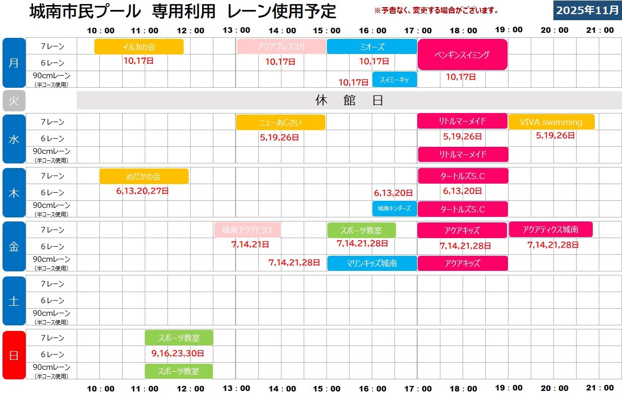 予定は予告なく変更になる場合がございます。予めご了承ください。