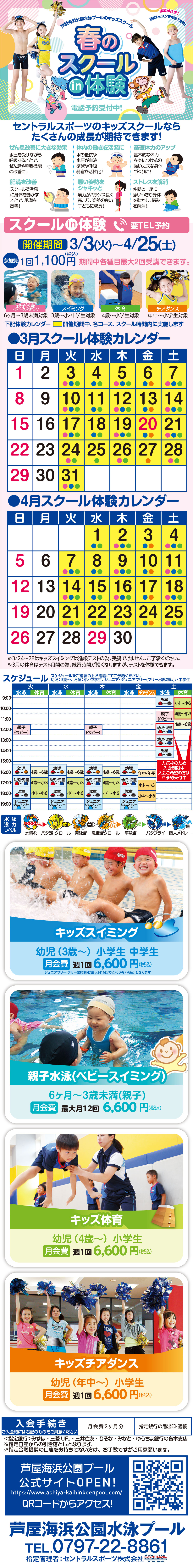 【参加者募集中】4月スクールIN体験実施のお知らせ。スイミング・ベビースイミング・体育・チアダンスが各種目2回ずつ体験できます。是非この機会にご体験ください。