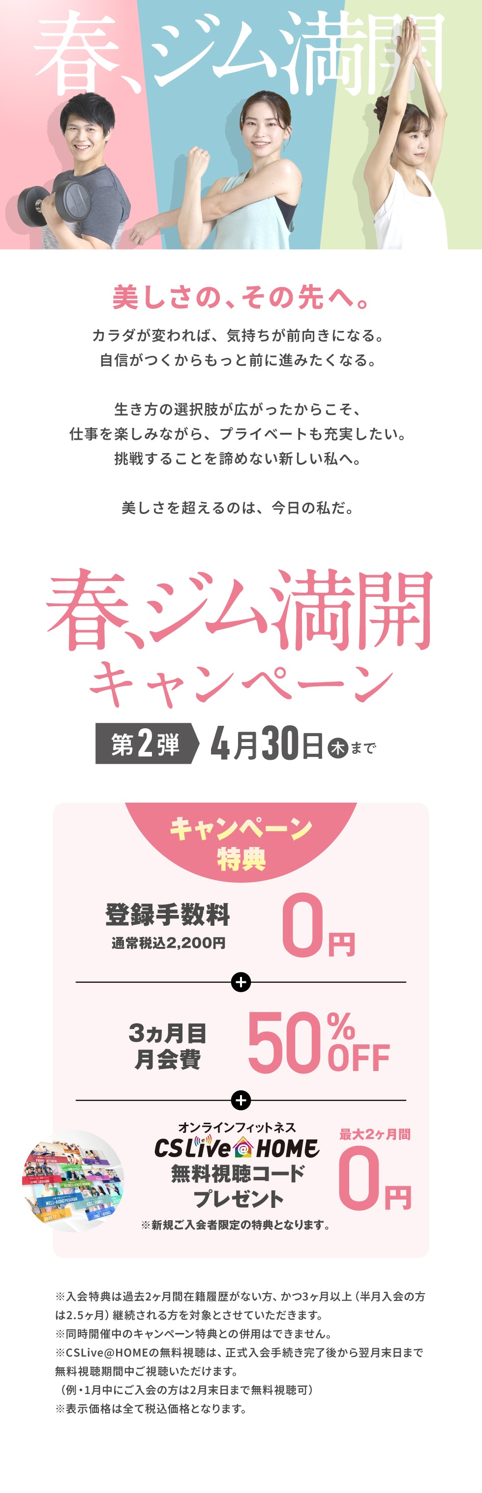 春、ジム満開!春の入会キャンペーンは4/30〆切です!