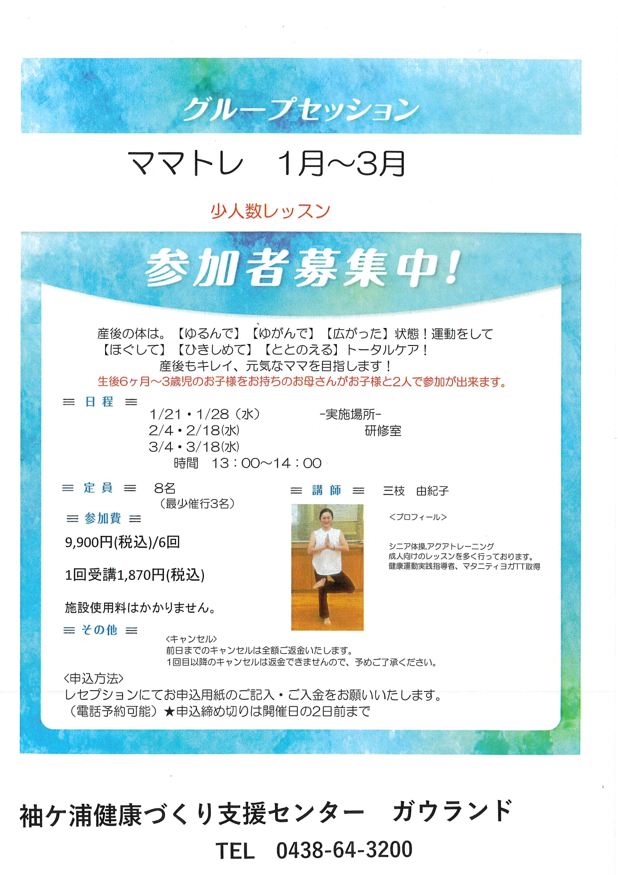 生後6ヶ月から3歳児のお子様をお持ちのお子さんと二人で参加出来ます。お子さんと一緒に簡単なストレッチ、自重トレーニング、有酸素運動をして産後もキレイに、元気なママを目指します。皆さんでリフレッシュしましょう。