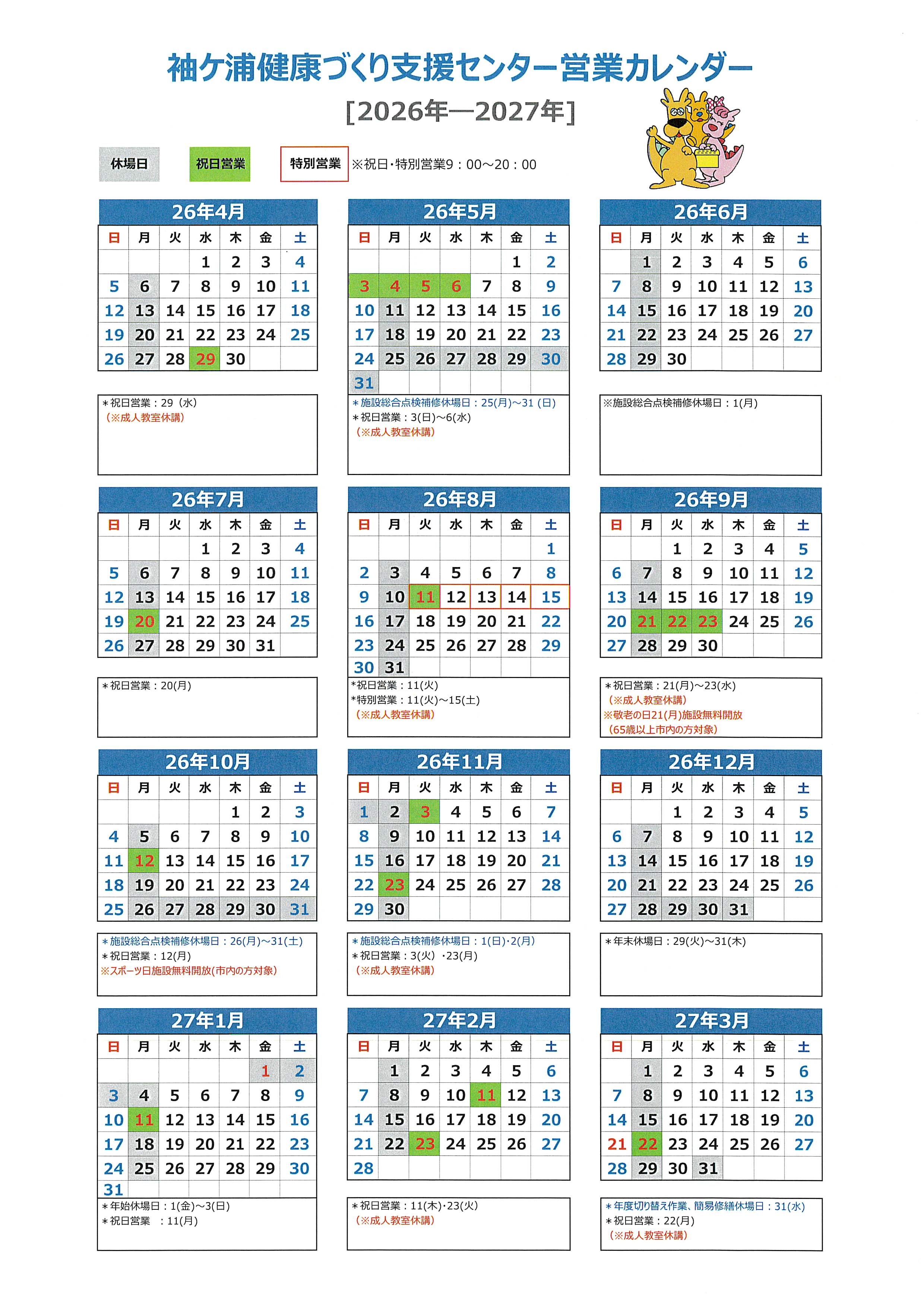 2026年度 営業日カレンダー