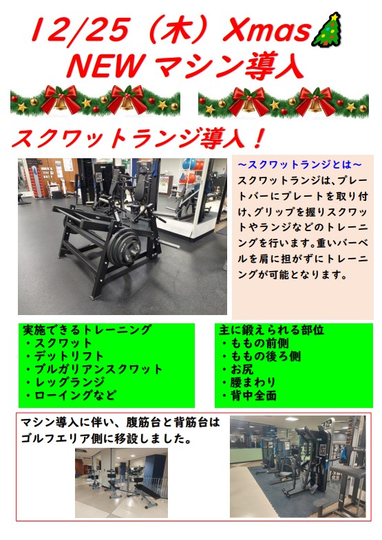 NEWマシン導入!!スクワットランジ!他種目の本格的トレーニングが可能!