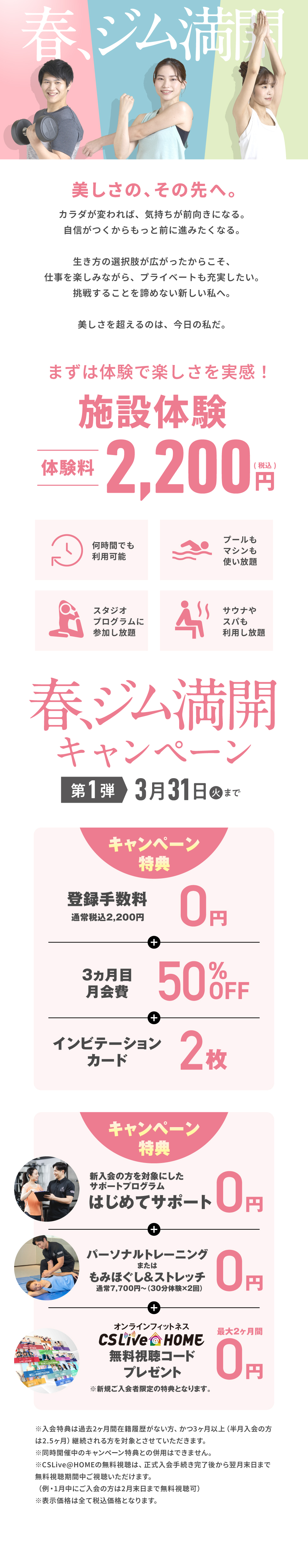 春、ジム満開!春の入会キャンペーン第1弾は3/31〆切です!