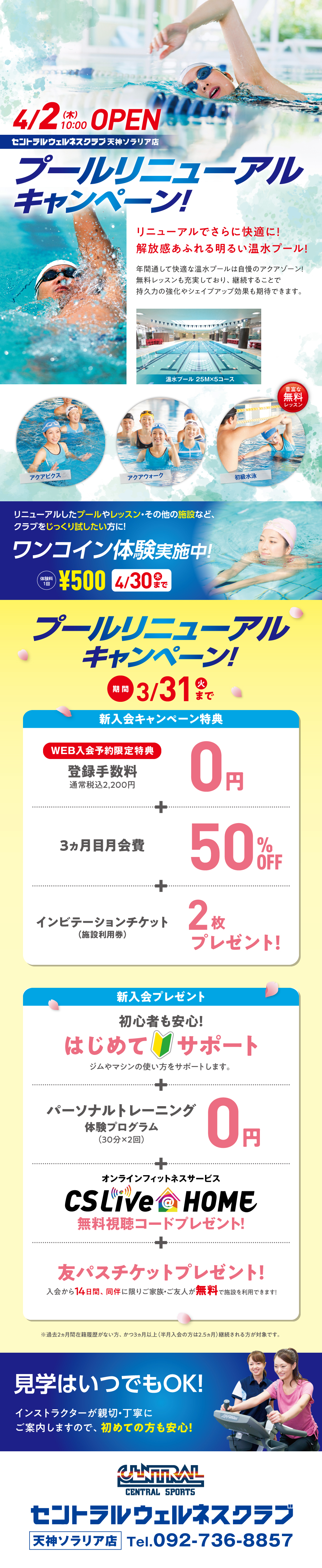 締切間近です!! 4/2再開!!プールリニューアルキャンペーン第1弾は3/31〆切です!
