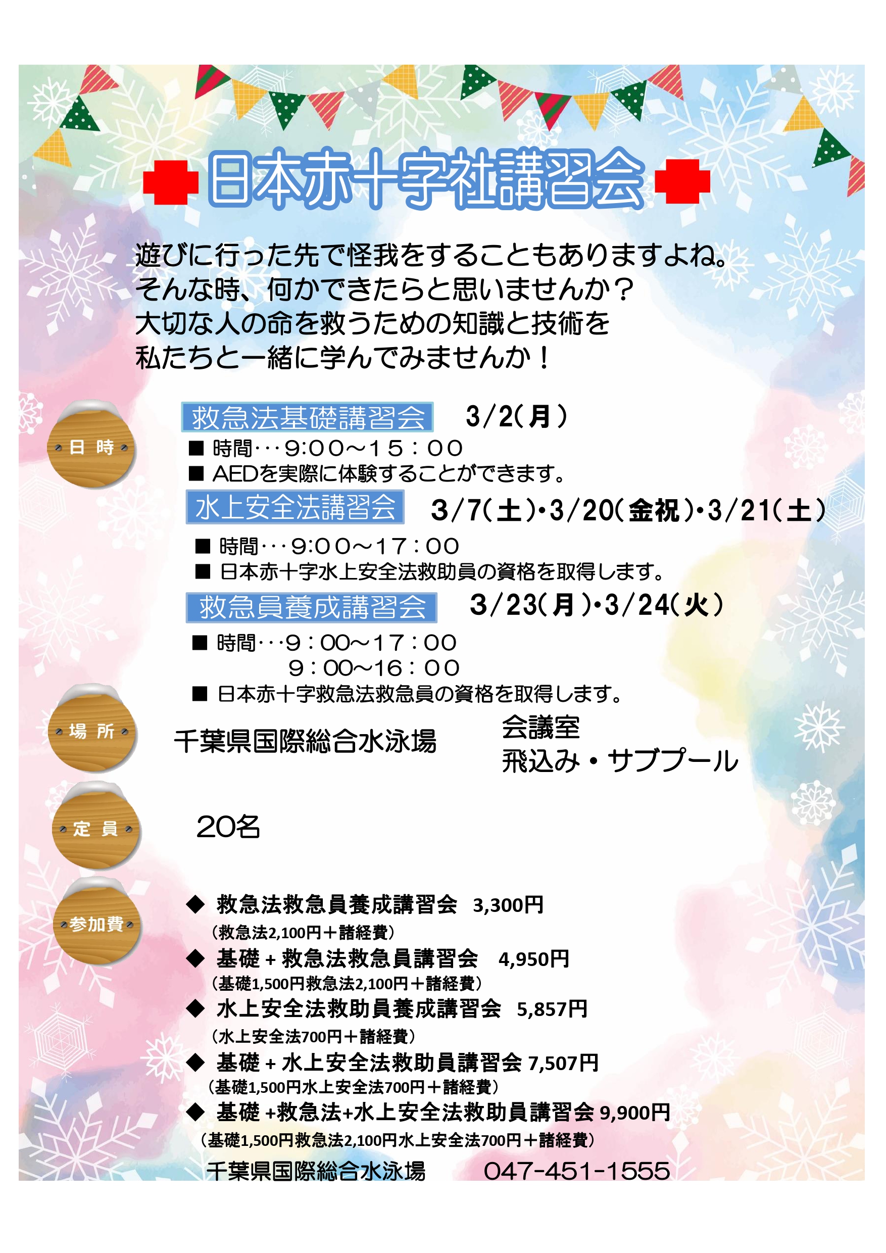 2026年2月1日(日)締め切り ※先着順。定員になり次第締め切りとさせていただきます。(各講習20名)