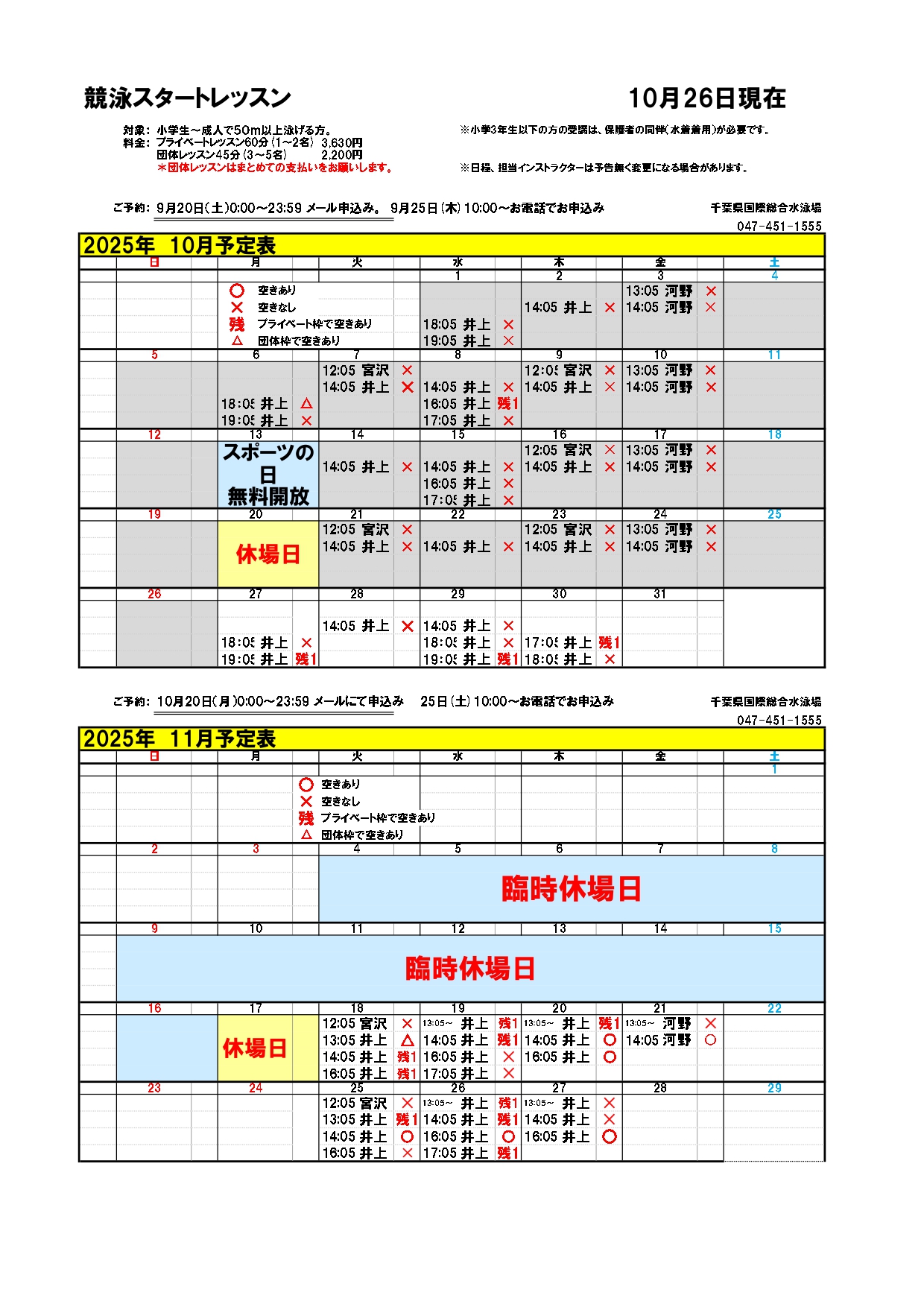 2025年11月のメール受付は終了しました。空き枠を10月25日 10:00~お電話にてお申込みになります。