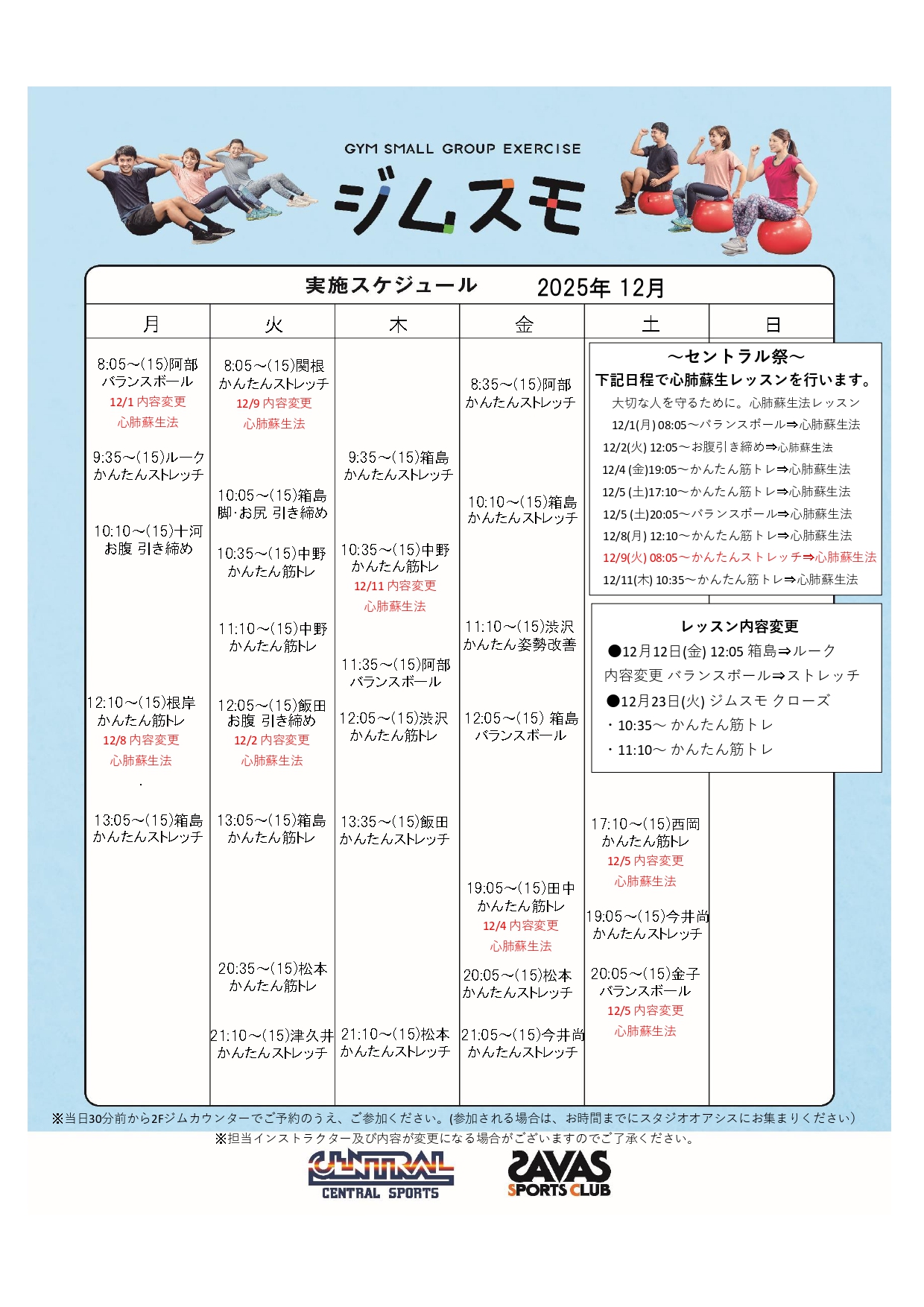 ★ジムスモ★ 2025年12月スケジュール【無料】
