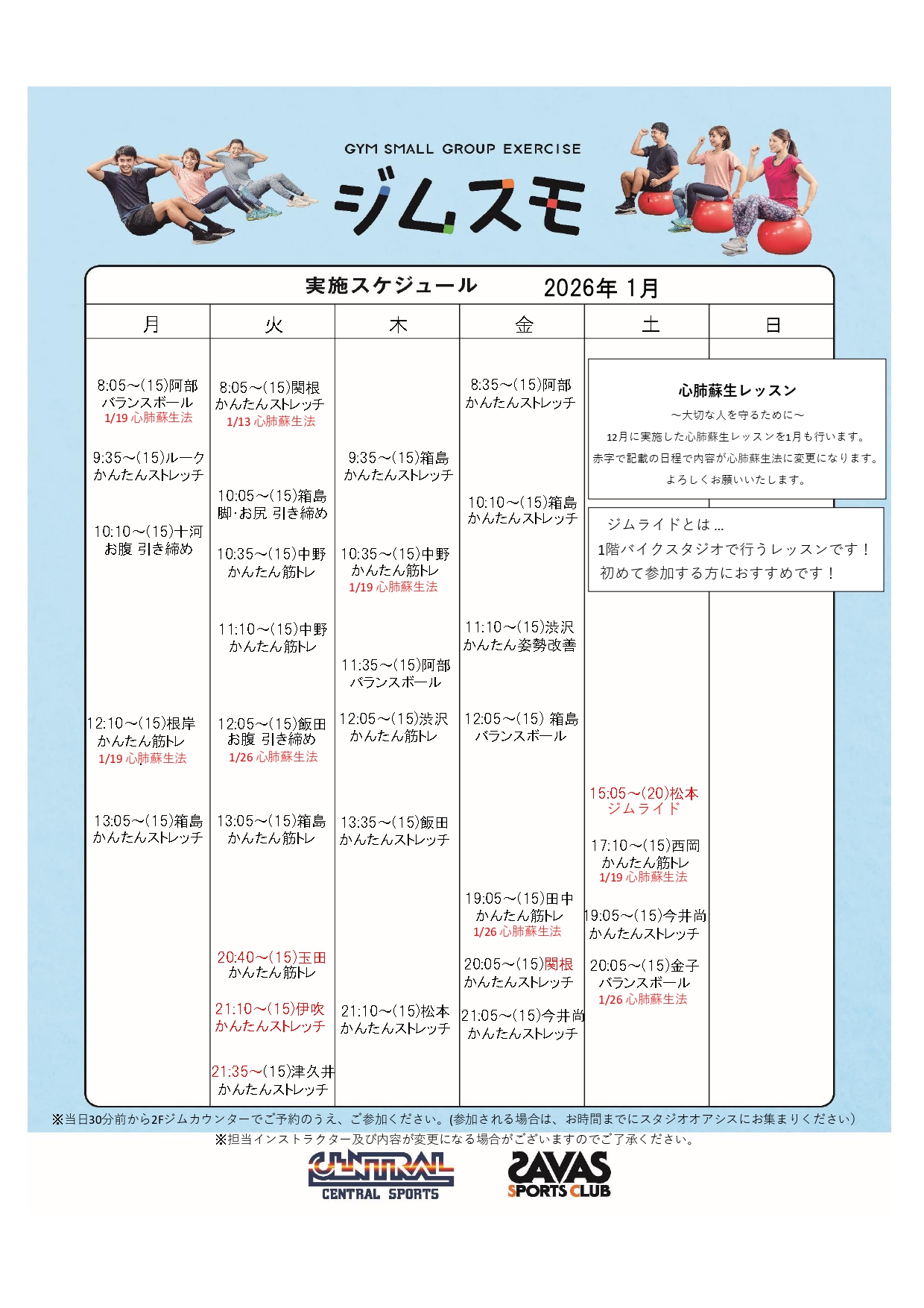 ★ジムスモ★ 2026年1月スケジュール【無料】