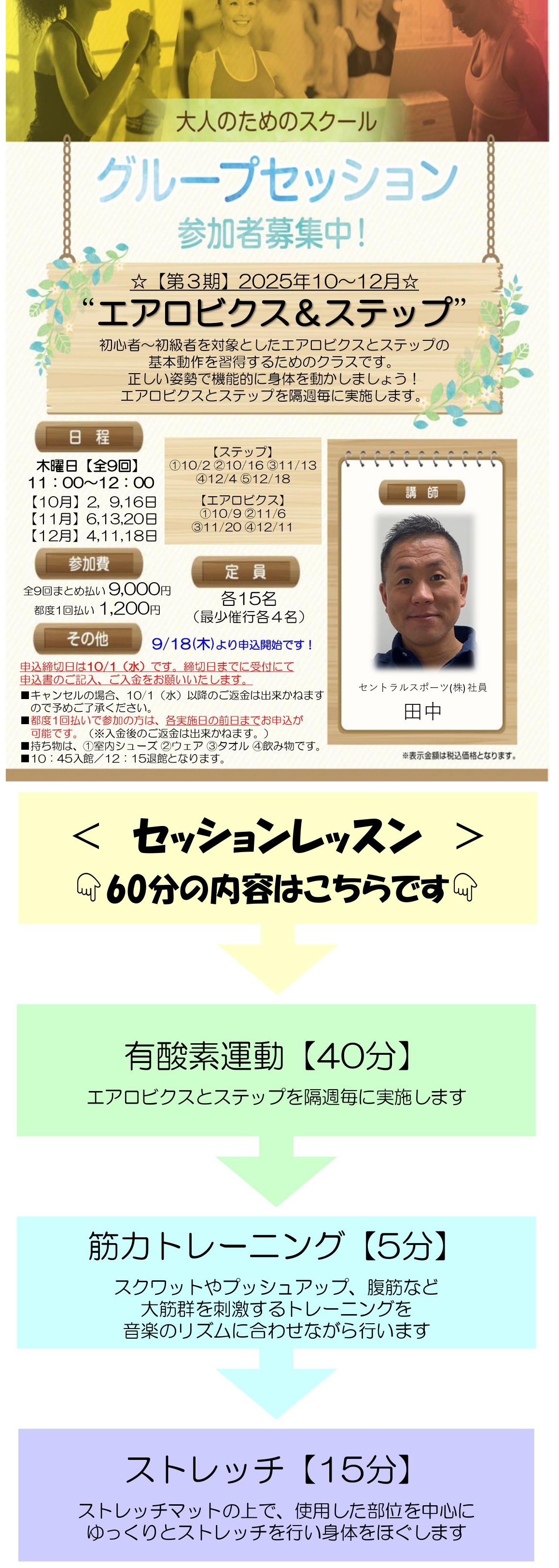 田中インストラクターによる『スタジオグループセッション』の第3期(10~12月)申込み受付中です!