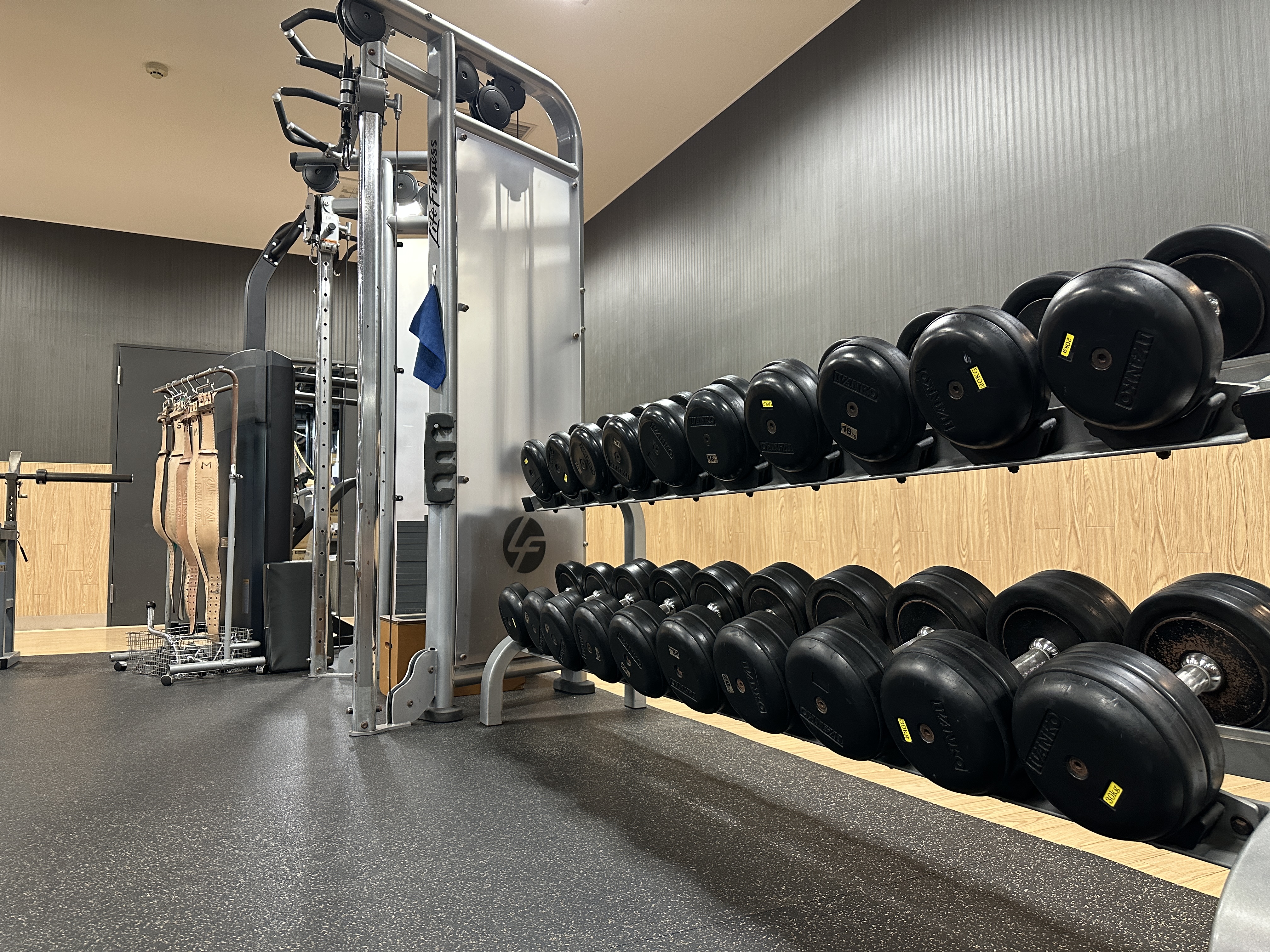 最大30kgのダンベルとベンチを組み合わせれ様々なトレーニングが可能です※12kg~30kgのダンベルは2セットある為、少ない待ち時間でご利用可能です -