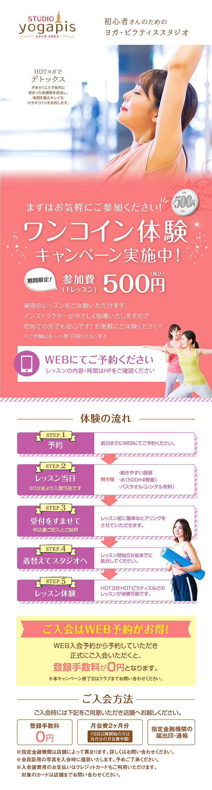 WEBから入会のご予約をしていただくことが可能です。