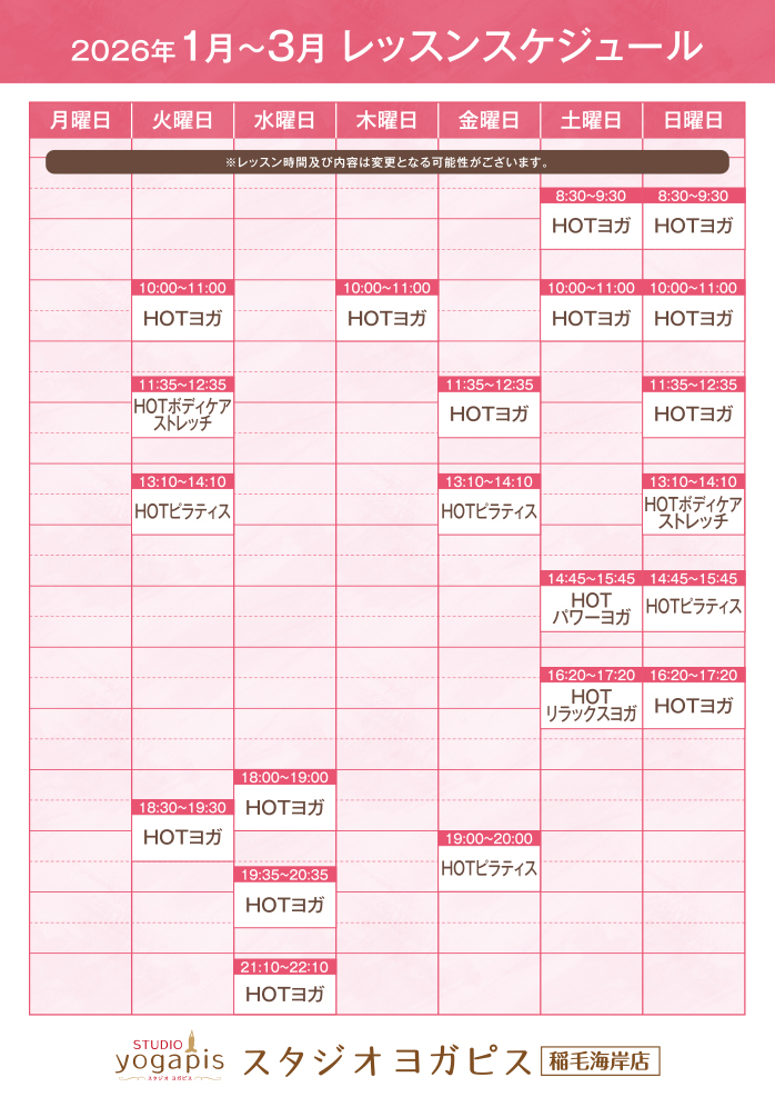 1月~3月のレッスンスケジュールはこちら