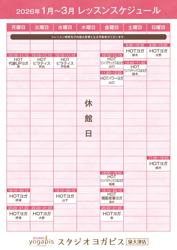 1月~3月レッスンスケジュールはこちら