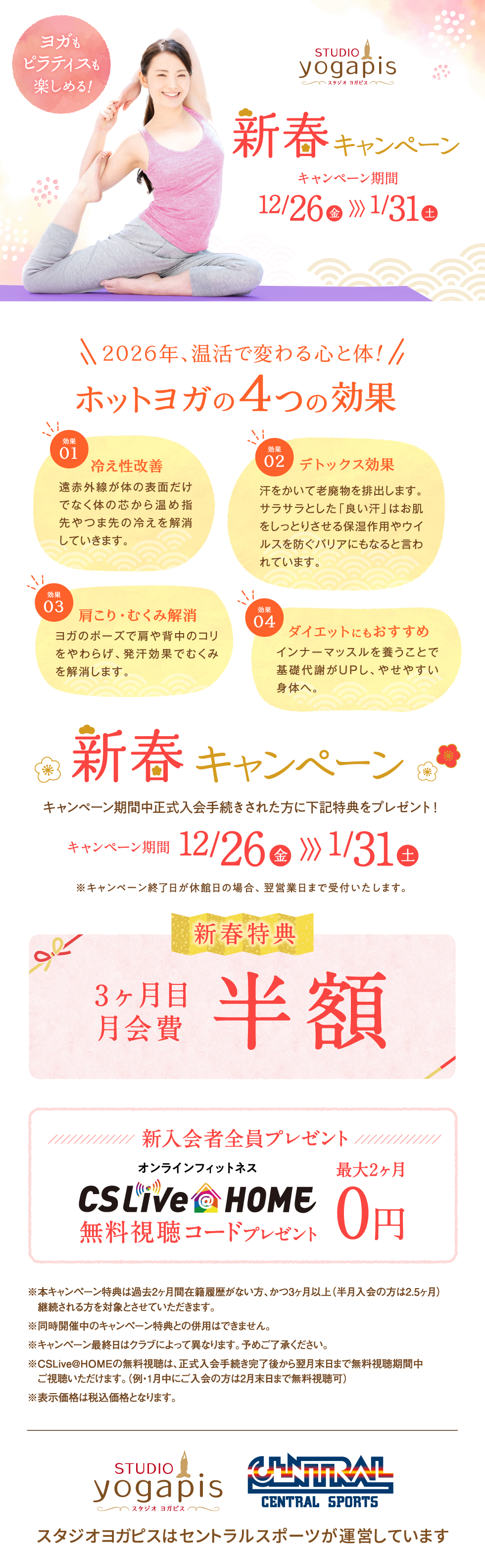 ※現在、ヨガのみの実施となります。(ピラティスは行っておりません)