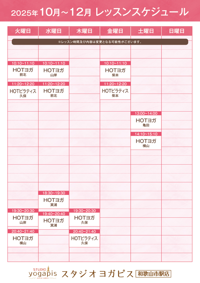 10~12月レッスンスケジュールはこちら!