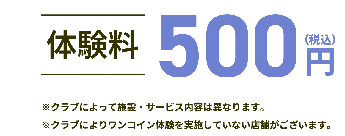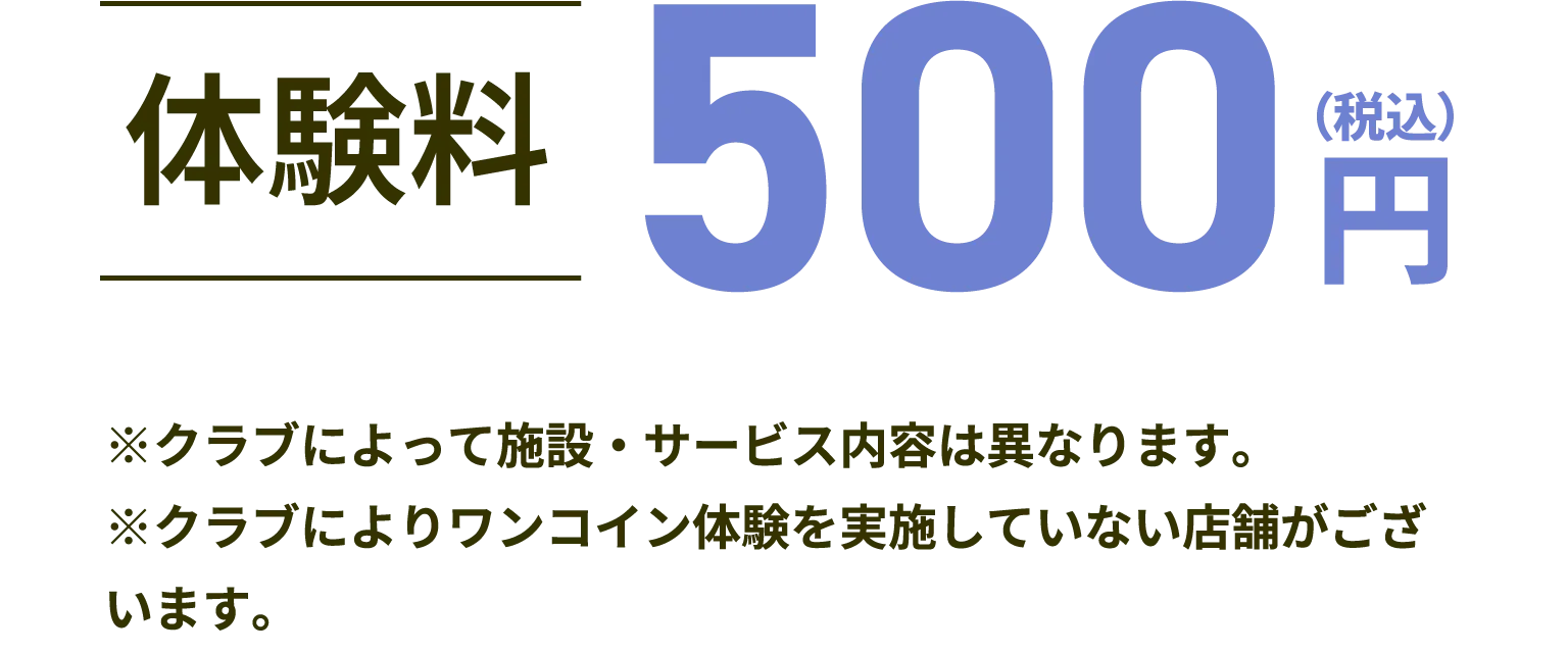 ※24時間ジムをはじめ、一部体験・見学対象外のクラブがございます。予めクラブHPをご確認ください。