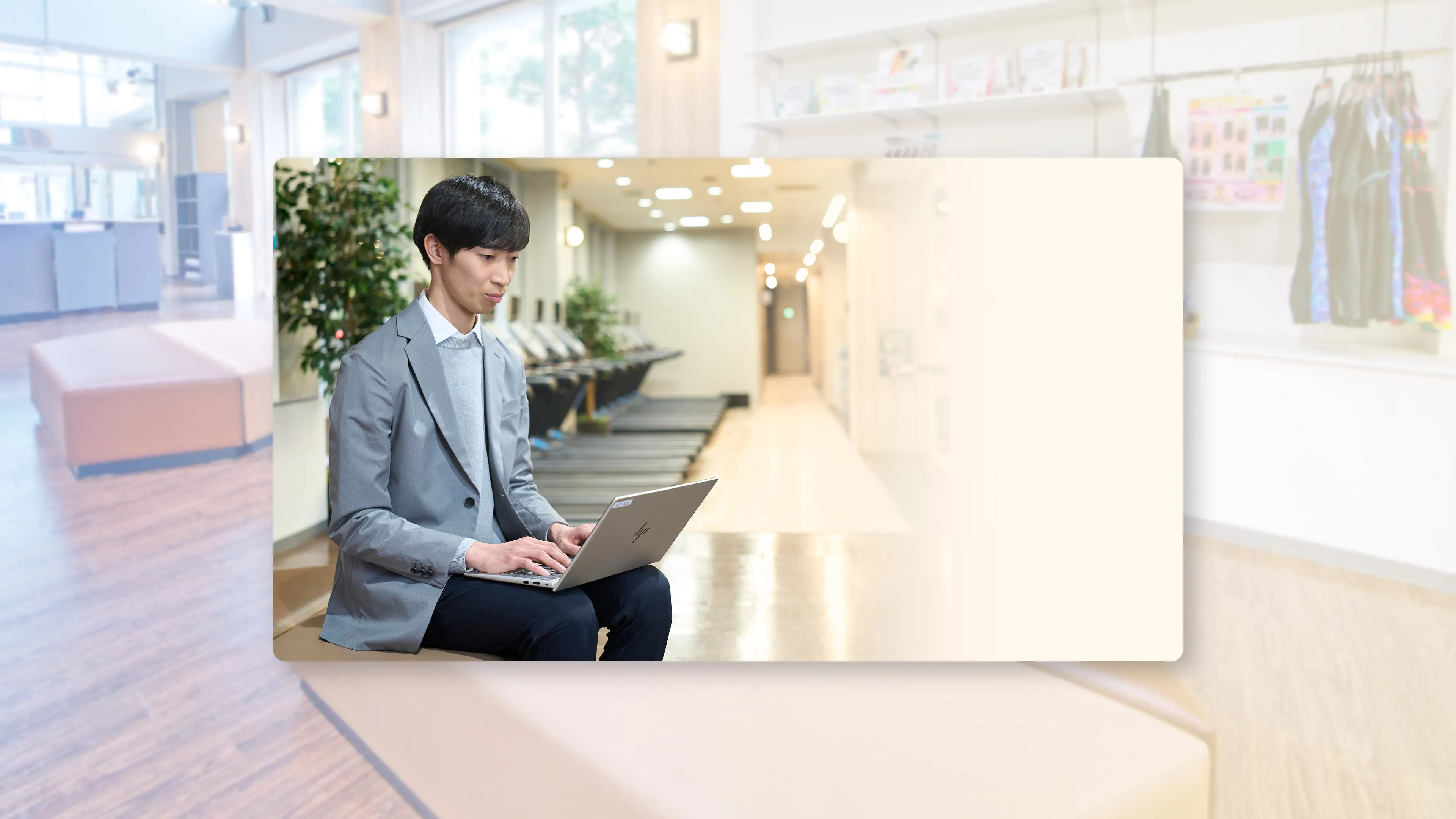 ラウンジで仕事のメールをチェックしたり、