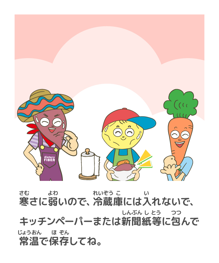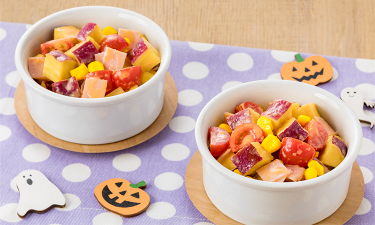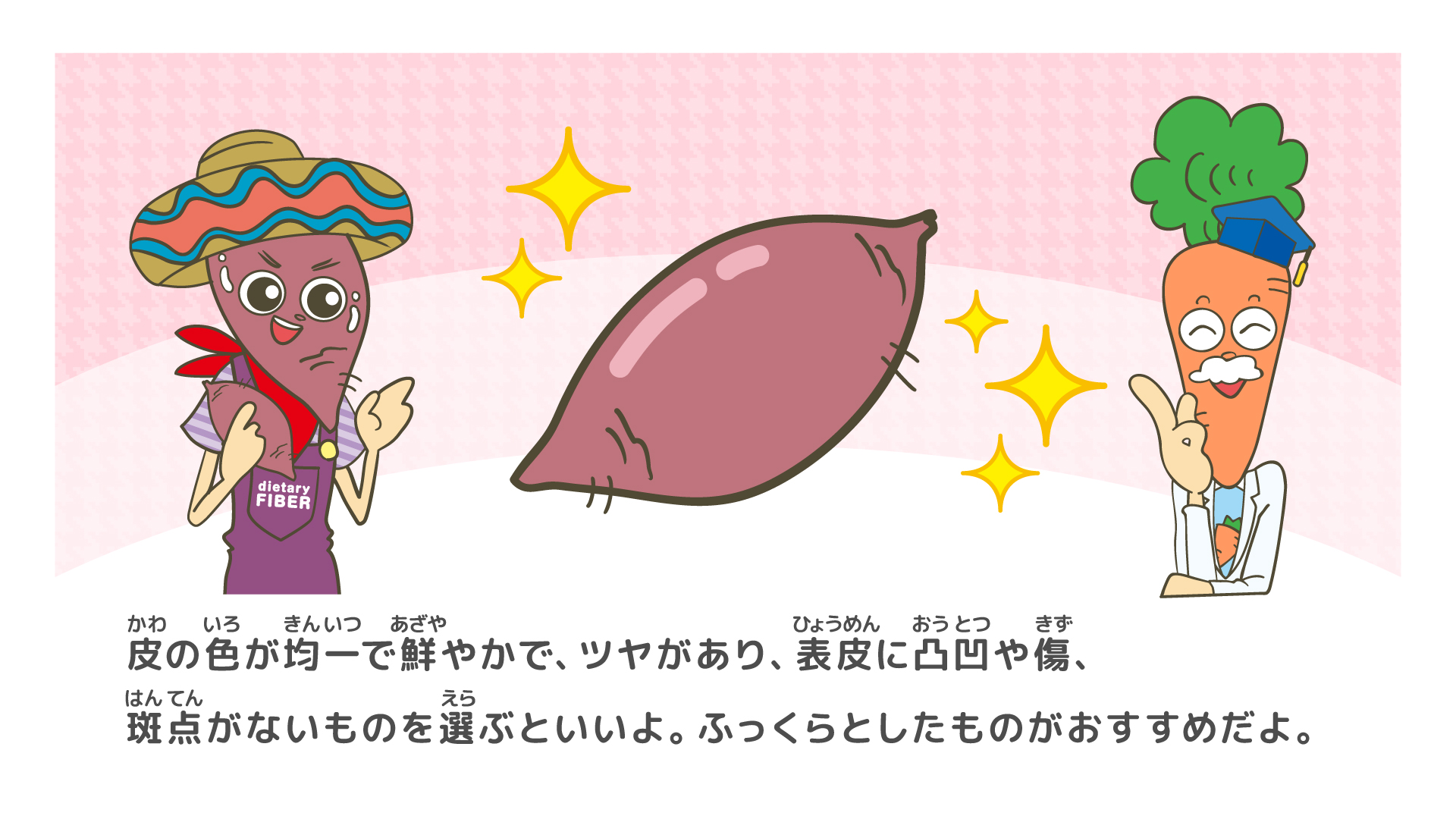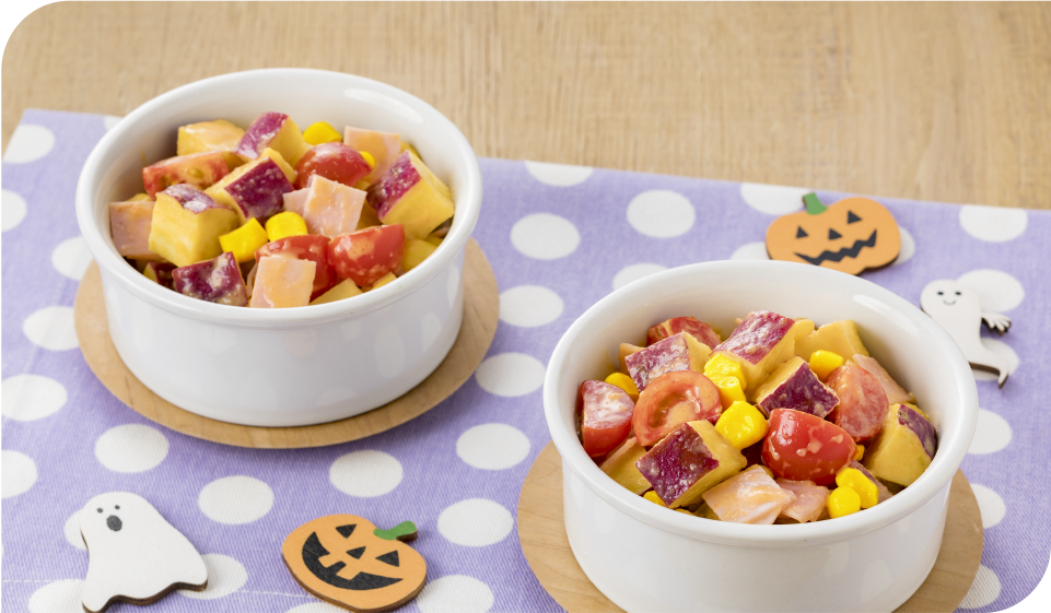 - さつまいもはよく洗い、皮つきのまま1.5cmの角切りにし、水にさらして水気をきる。