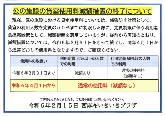 西麻布いきいきプラザからお知らせ