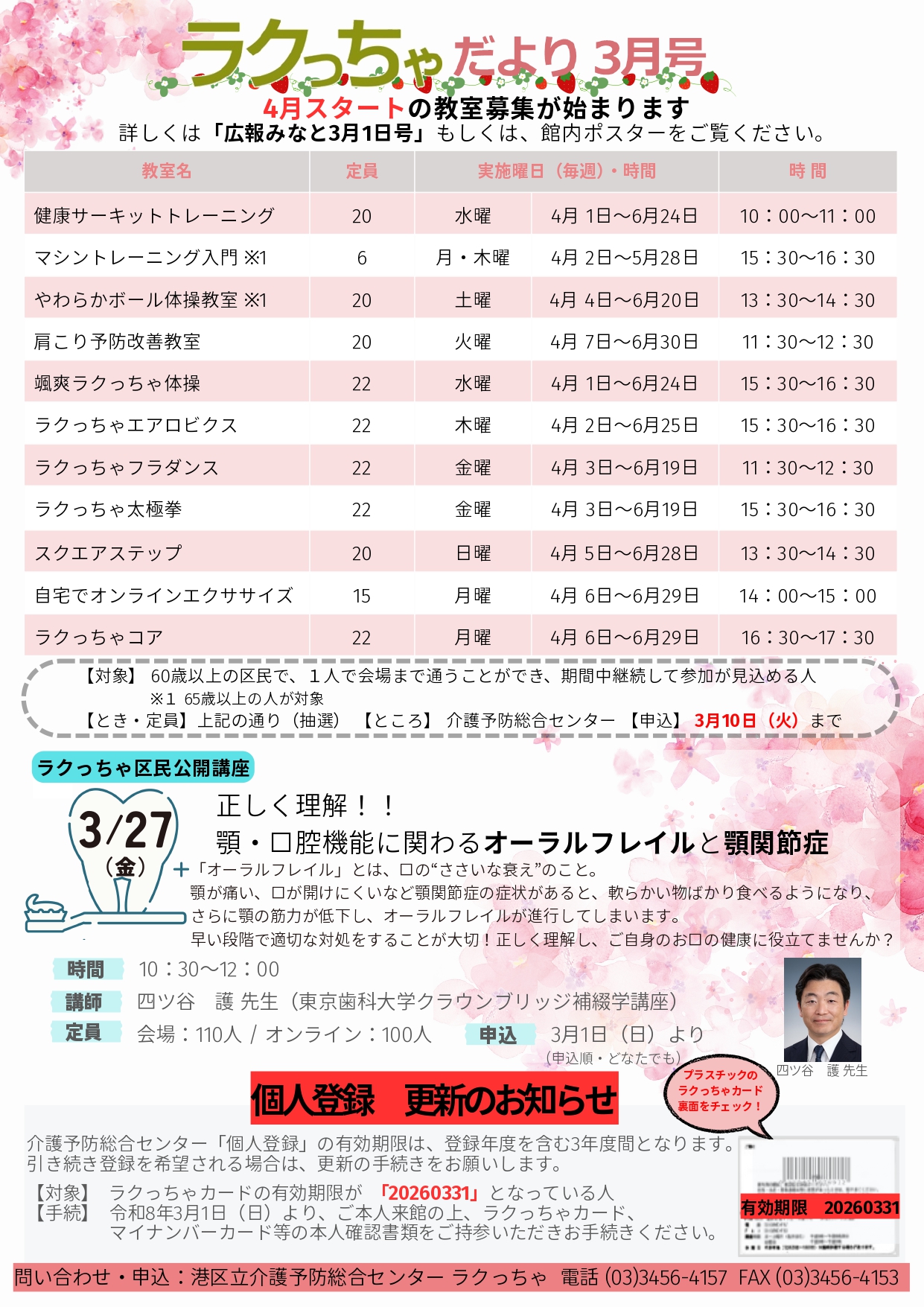 港区立介護予防総合センターラクっちゃでは、広く区民の皆様に介護予防に関する様々な情報をご提供させて頂いております。是非、お近くの皆様にもご紹介ください。