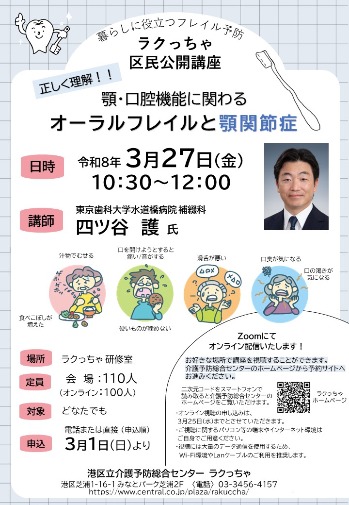 【3月】区民公開講座 顎・口腔機能に関わるオーラルフレイルと顎関節症