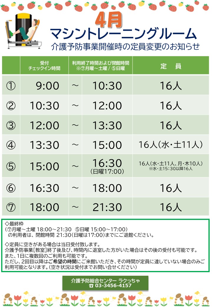 【4月】マシントレーニングルーム ご利用スケジュール