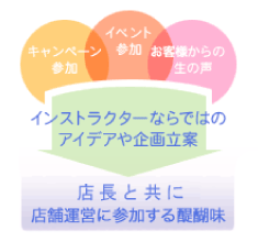 新規顧客獲得のキャンペーンや顧客満足を高めるイベントへも積極的にインストラクターは参加します。お客様からの生の声をダイレクトに聞くことができるインストラクターだからこそ立案することができるイベント企画やアイデアは、店舗を育てていくうえで非常に重要です。店長と一体になって、店舗運営に携わっていく醍醐味も味わうことができる仕事といえます。